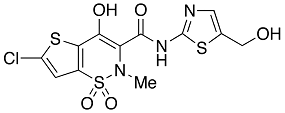 | Synonym | 6-Chloro-4-hydroxy-2-methyl-N-(5-hydroxymethyl-2-thiazolyl)-2H-thieno[2,3-e]-1,2-thiazine-3-carboxamide 1,1-Dioxide; MTB-1; |