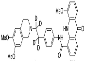 | Synonym | N-[4-[2-(3,4-Dihydro-6,7-dimethoxy-2(1H)-isoquinolinyl)ethyl-d4]phenyl]-9,10-dihydro-5-methoxy-9-oxo-4-acridinecarboxamide; GF 120918-d4; GG 918-d4; GW 0918-d4; |