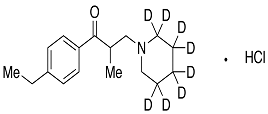 | Synonym | 1-(4-Ethylphenyl)-2-methyl-3-(1-piperidinyl-d10)-1-propanone Hydrochloride; 4'-Ethyl-2-methyl-3-(piperidino-d10)propiophenone Hydrochloride; E 0646-d10; EMPP-d10; Mional-d10; Myonal-d10; |