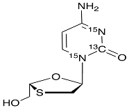 | Synonym | (2R-trans)-4-Amino-1-[2-(hydroxymethyl)-1,3-oxathiolan-5-yl]-2(1H)-pyrimidinone-15N2,13C; 4-Amino-1-[(2R,5R)-2-(hydroxymethyl)-1,3-oxathiolan-5-yl]-2(1H)-pyrimidinone-15N2,13C; |