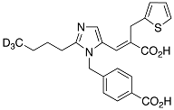 | Synonym | (E)-3-[2-(Butyl-d3)-1-[(4-carboxyphenyl)methyl]imidazol-5-yl]-2-(2-thienylmethyl)-2-propenoic Acid; SKF-108566-d3; |