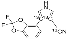 | Synonym | 4-(2,2-Difluoro-1,3-benzodioxol-4-yl)-1H-pyrrole-3-carbonitrile-13C3; 3-(2,2-Difluoro-benzodioxol-4-yl)-4-cyanopyrrole-3C3; |