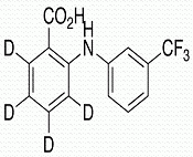 | Synonym | 2-[[3-(Trifluoromethyl)phenyl]amino]benzoic Acid-d4; 2-[3-(Trifluoromethyl)anilino]benzoic Acid-d4; 3'-Trifluoromethyldiphenylamine-2-carboxylic Acid-d4; Fullsafe-d4; INF 1837-d4; Meralen-d4; Sastridex-d4; Surika-d4; Tecramine-d4; |