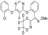 | Synonym | (1E)-[2-[[6-(2-Chlorophenoxy)-5-fluoro-4-pyrimidinyl]oxy]phenyl](5,6-dihydro-1,4,2-dioxazin-3-yl-d4)methanone O-Methyloxime; Disarm-d4; HEC 5725-d4; Fandango-d4; |