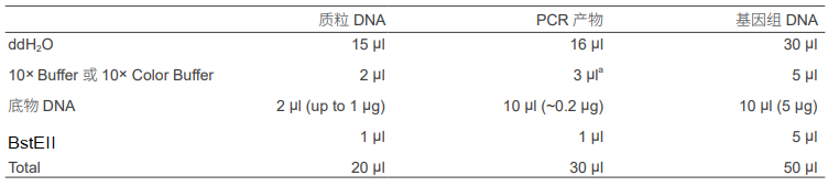 ② 所有快速内切酶的体积总和不得超过总反应体系的 1/10;