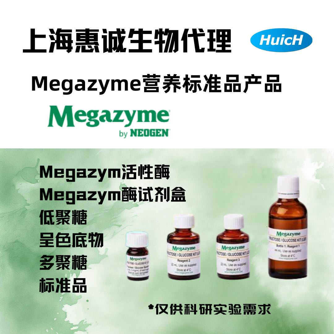 Megazyme是一家世界领先的、专注于酶学检测试剂盒和试剂的高科技生物技术公司,其产品主要用于食品、饲料、发酵、农业和生物燃料等行业的分析检测。上海惠诚生物全国代理Megazyme糖/酶产品,咨询订购021-60498804